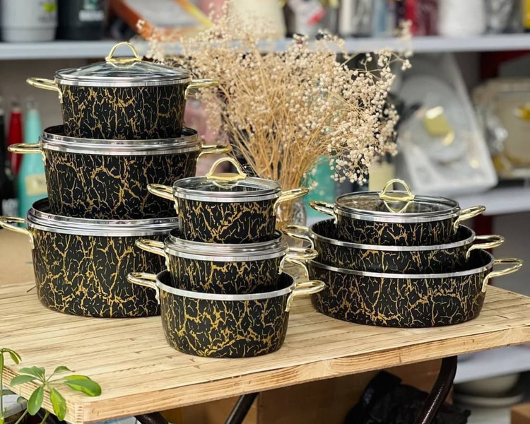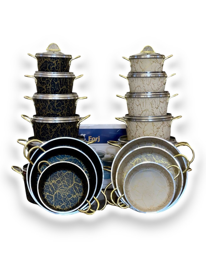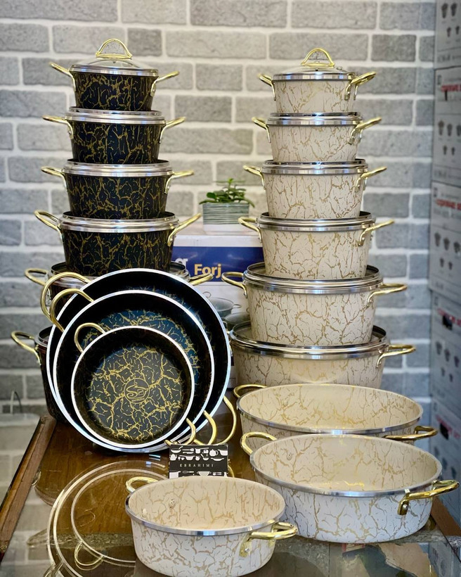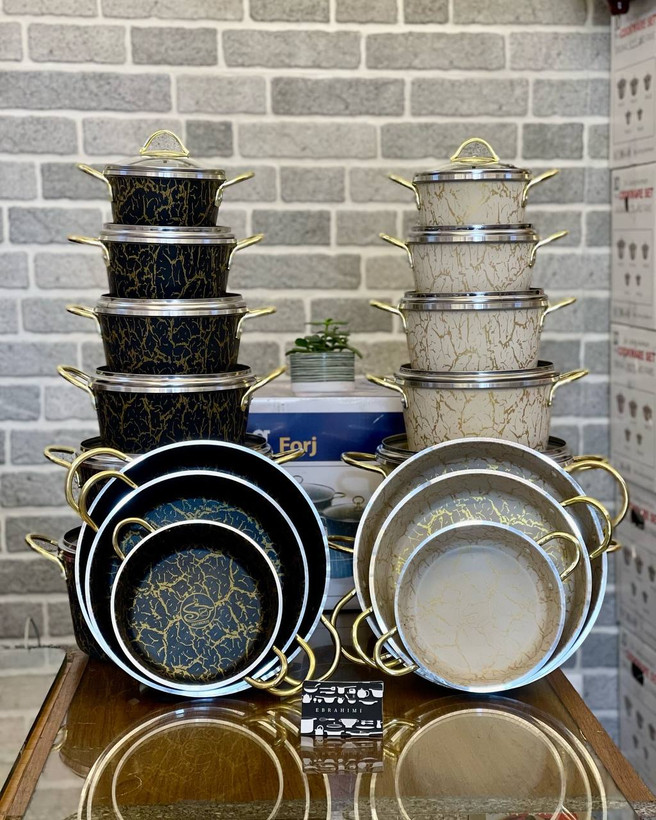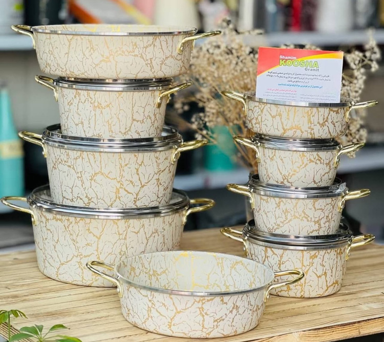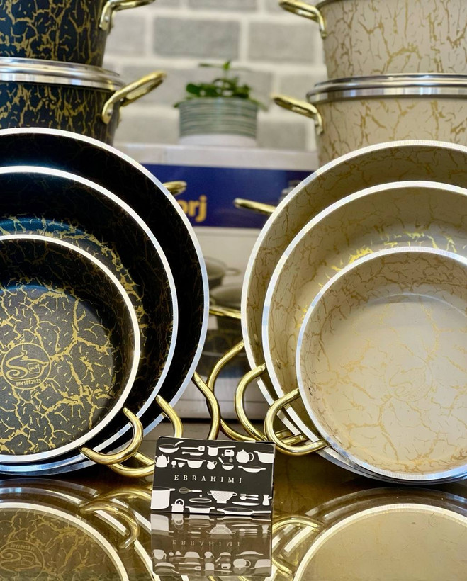 دارای ۶ عدد قابلمه سایز ۱۴-۱۶-۱۸-۲۰-۲۴-۲۸