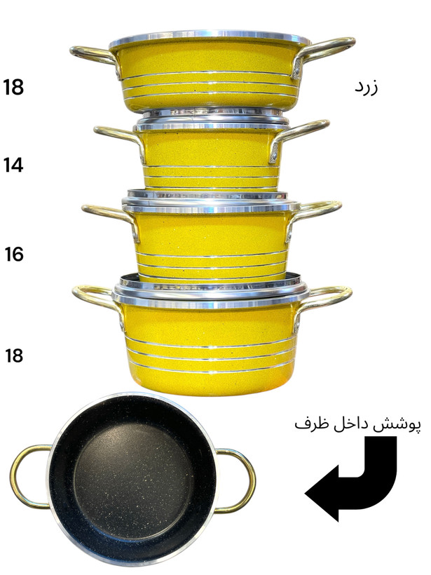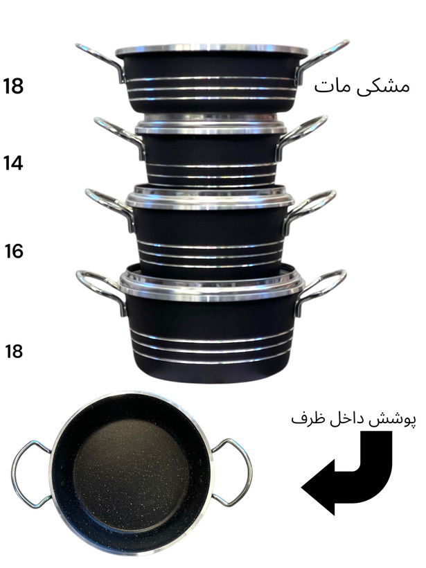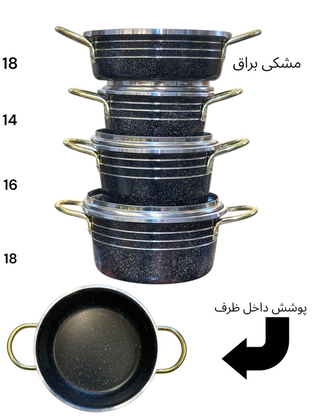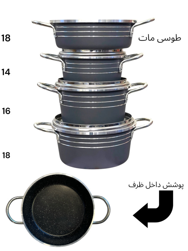 شامل سه عدد قابلمه سایز ۱۴-۱۶-۱۸