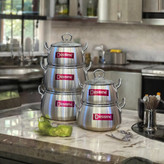 ۵ عدد قابلمه سایز ۱۴-۱۶-۱۸-۲۰-۲۲ ( مدل خمره ای حجم قابلمه بزرگتر از درب ها میباشد )